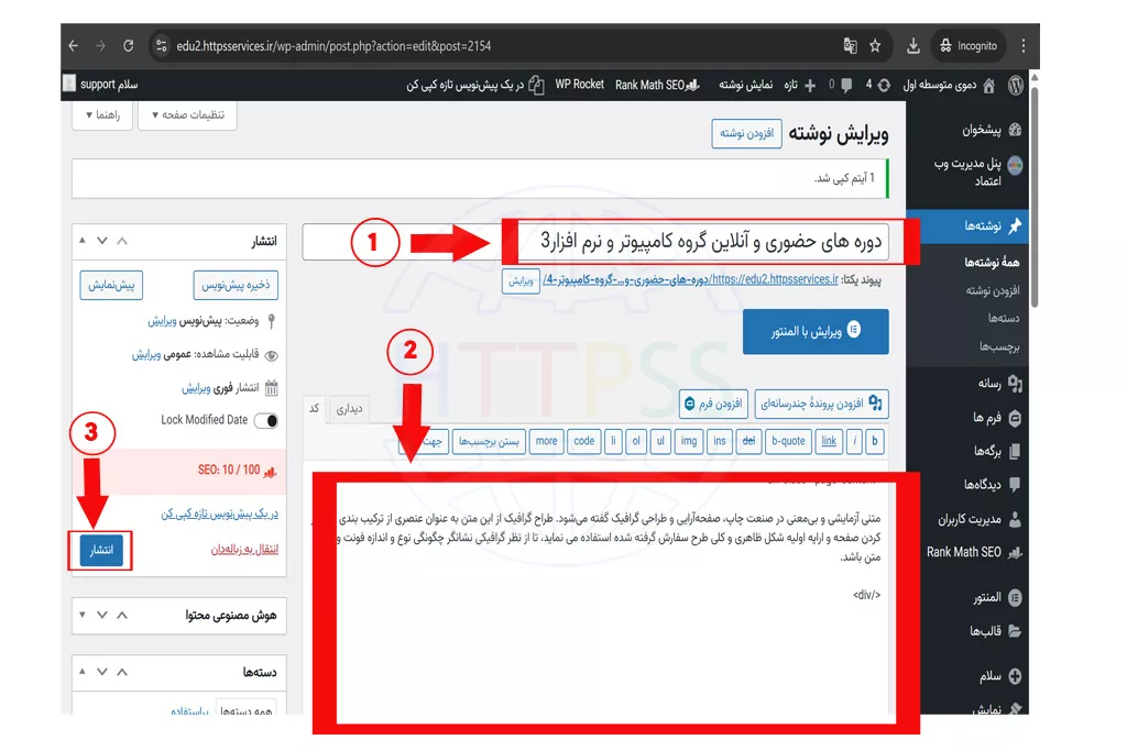 ۳. آموزش افزودن یک اطلاعیه جدید (برای ادمین مبتدی)