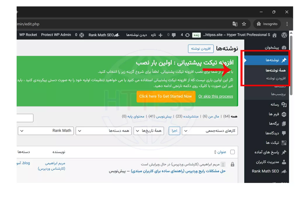 در منوی سمت راست وردپرس، روی «نوشتهها» کلیک کنید