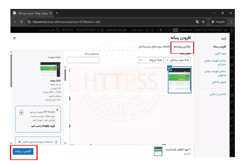 روی گزینه افزودن پرونده چند رسانه ای کلیک کنید
