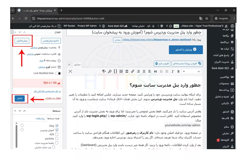 در نهایت روی «انتشار» کلیک کنید تا نوشته در سایت قرار بگیرد.