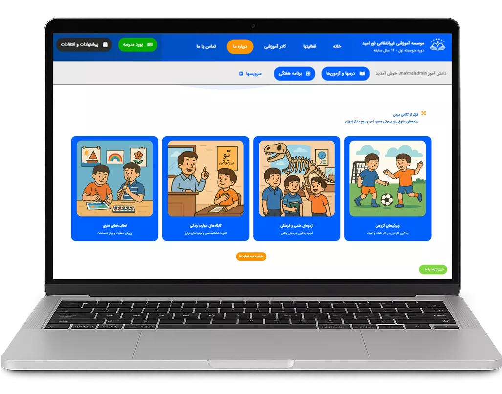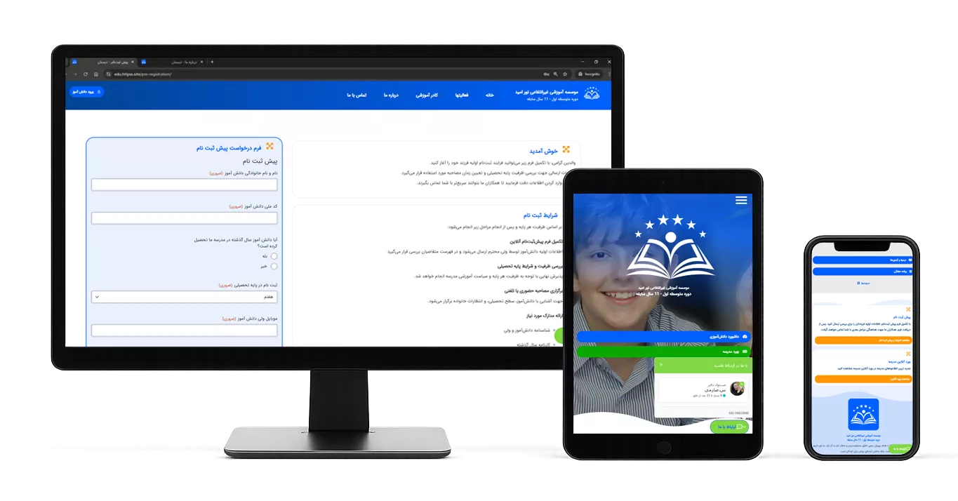 یک پایگاه رسمی، ، امن و حرفه‌ای برای معرفی مدرسه، جذب دانش‌آموز و اطلاع‌رسانی مؤثر